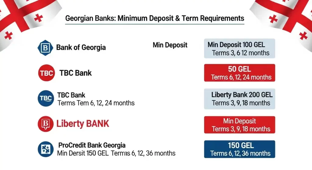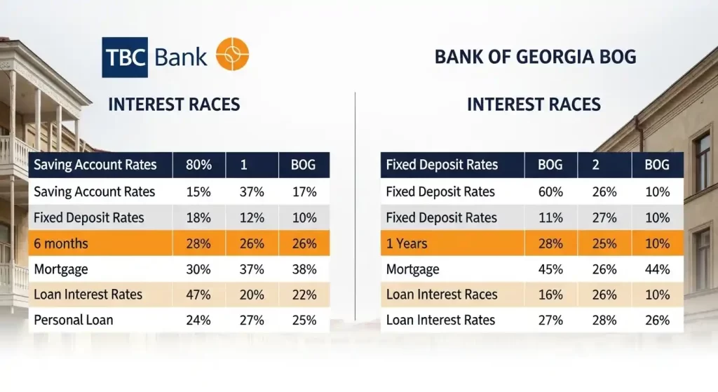 - 主要銀行(TBC, BOGなど)の預金条件と金利比較