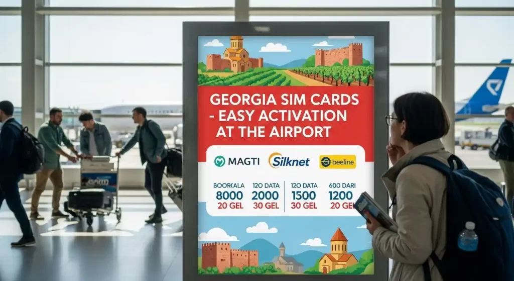 時間に余裕があるなら、市内中心部の公式ショップ(例えばルスタヴェリ通りなど)がおすすめです。プランも豊富ですし、設定も全部やってもらえますよ。購入時にはパスポートが必須なので、忘れずに持っていきましょう。
