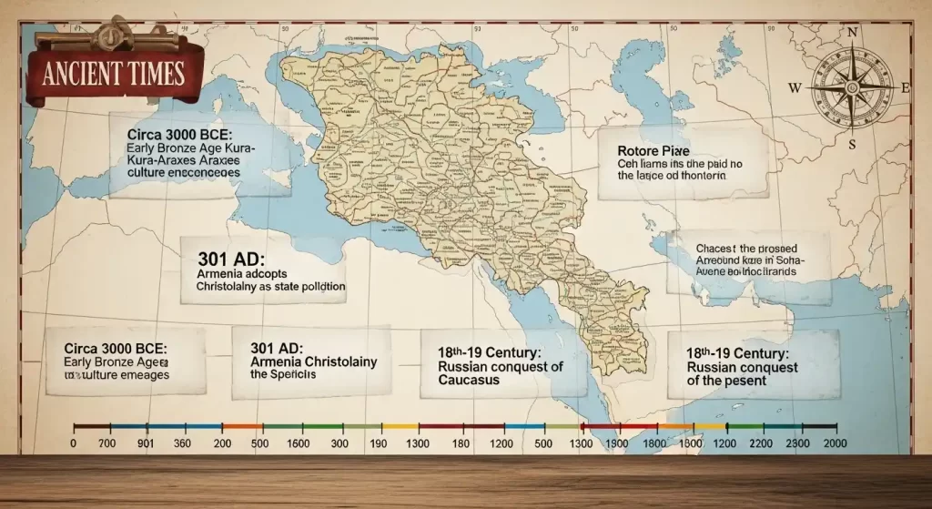カフカス地方は、その地理的な位置から、古来よりヨーロッパ、アジア、中東の文明が交錯する「文明の十字路」として、非常に長く複雑な歴史を歩んできました。